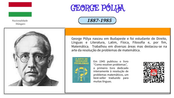 George Pólya nasceu em Budapeste e foi estudante de Direito, Línguas e Literatura, Latim, Física, Filosofia e, por fim, Matemática. Trabalhou em diversas áreas mas destacou-se na arte da resolução de problemas de matemática.