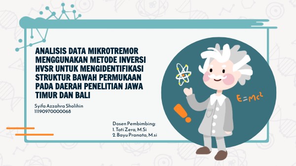 [1] N. A. Ferani, H. P. Yuniarto, D. Widyawarman, “Analisis Amplifikasi Dan Indeks Kerentanan Seismik di Kawasan FMIPA UGM Menggunakan Metode HVSR,” JurnalGeosaintek., vol. 5, no. 2, pp. 60-67, 2019. [2] P. D. Pratama, D. K. Priyanto, P. K. G. Arta, “Analisis Ambient Seismic Noisepada Perayaan Hari Nyepi di Denpasar, Bali Menggunakan Metode Horizontal to Vertical Spectral Ratio (HVSR),” Jurnal Geofisika., vol. 18, no. 01, pp. 23-26, 2020. [3] V. Arintalofa, G. Yuliyanto, U. Harmoko, “Analisis MIkrotremor menggunakan Metode HVSR untuk Mengetahui Karakteristik Bawah Permukaan Manifestasi Panas Bumi Diwak dan Derekan Berdasarkan Nilai VP,” JEBT: Jurnal Energi Baru & Terbarukan., vol. 1, no. 2, pp. 54-61, Juli. 2020. doi: 10.14710/jebt.2020.9276 [4] E. R. Iswanto, Y. Indrawati, T. A. Riyanto, “Studi Mikrotremor dengan Metode Horizontal to Vertical Spectral Ratio (HVSR) di Tapak RDE, Serpong,” Eksplorium., vol. 40, no. 2, pp. 105-114, November. 2019. [5] A. Sudrajat, “Analisis Litologi Lapisan Sedimen Berdasarkan Metode Horizontal To Vertical Spectral Ratio (HVSR) dan Data Bor di Kawasan Jalur Sesar Opak,” Skripsi., Universitas Negeri Yogyakarta., Daerah Istimewa Yogyakarta, 2017. [6] D. Ambarsari, “Analisis Mikrotremor Dengan Metode HVSR Untuk Mikrozonasi Kabupaten Gunungkidul Yogyakarta,” Skripsi., Institut Sepuluh Nopember., Daerah Istimewa Yogyakarta, 2017. [7] H. A. Setiawan, “Analisa Data Mikrotremor Menggunakan Metode HVSR (Horizontal To Vertical Spectral Ratio) untuk Membuat Peta PGA (Peak Ground Acceleration),” Skripsi., Universitas Brawijaya., Malang, 2018. [8] T. S. Amrullah, “Aplikasi Metode Horizontal To Vertical Spectral Ratio (HVSR) untuk Analisis Struktur Bawah Permukaan Tanah Pada Zona Amblesan Studi Kasus Perumahan Tanah Mas Kota Semarang,” Skripsi., Universitas Negeri Semarang., Semarang, 2018. [9] N. Haerudin, F. Alami, Rustandi, Mikroseismik, Mikrotremor dan Microearthquake dalam ilmu kebumian. Bandarlampung, 2019