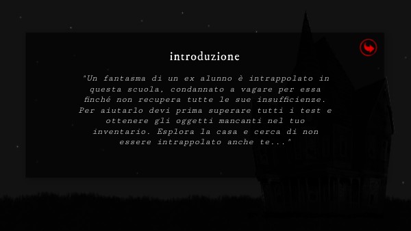 "Un fantasma di un ex alunno è intrappolato in questa scuola, condannato a vagare per essa finché non recupera tutte le sue insufficienze. Per aiutarlo devi prima superare tutti i test e ottenere gli oggetti mancanti nel tuo inventario. Esplora la casa e cerca di non essere intrappolato anche te..."