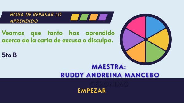 Veamos que tanto has aprendido acerca de la carta de excusa o disculpa. 5to B