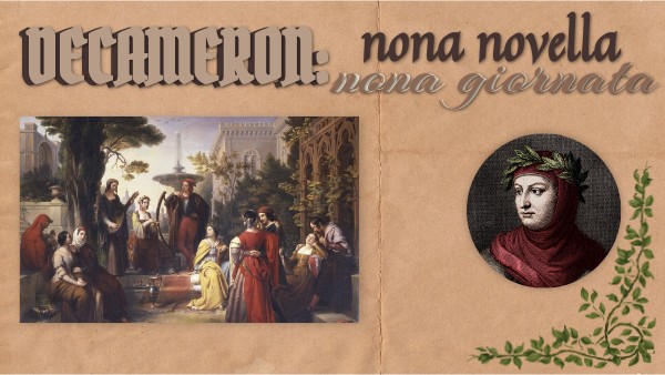 "Il tema piacque alla lieta brigata, la quale, con licenza del nuovo re, tutta levatasi da sedere, agli usati diletti si diede, ciascuno secondo quello a che piú dal disidèro era tirato: e cosi fecero infino all’ora della cena."