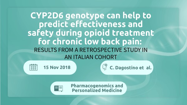 - CYP2D6 genotype can help to predict effectiveness and safety during opioid treatment for chronic low back pain: results from a retrospective study in an Italian cohort, C. Dagostino et al