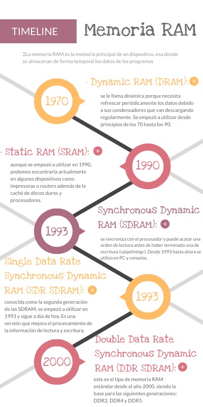este es el tipo de memoria RAM estándar desde el año 2000, siendo la base para las siguientes generaciones: DDR2, DDR4 y DDR5.