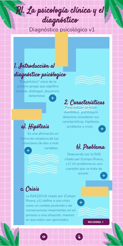 Para realizar un buen dianóstico psicológico debemos considerar sus características, hipótesis, problema y crisis.