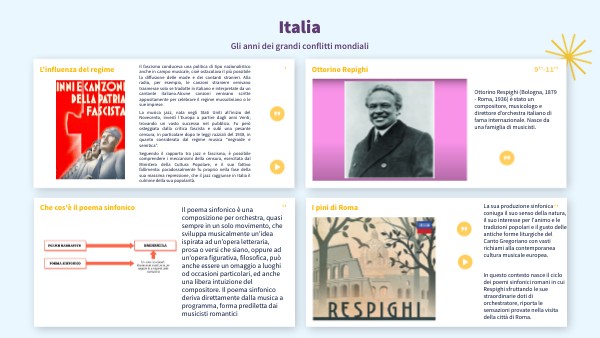 Ottorino Respighi (Bologna, 1879 - Roma, 1936) è stato un compositore, musicologo e direttore d’orchestra italiano di fama internazionale. Nasce da una famiglia di musicisti.