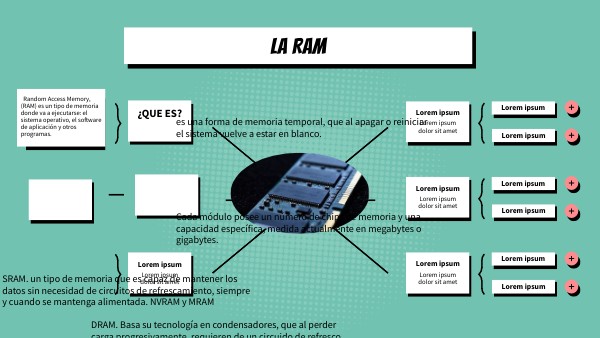 Random Access Memory, (RAM) es un tipo de memoria donde va a ejecutarse: el sistema operativo, el software de aplicación y otros programas.