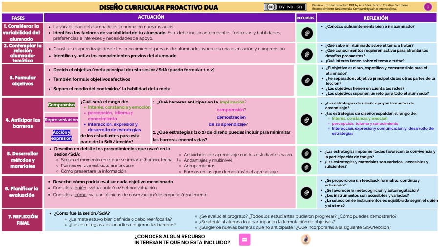 Diseño curricular proactivo DUA by Ana Fdez. Sancho Creative Commons Reconocimiento-NoComercial-CompartirIgual 4.0 Internacional.