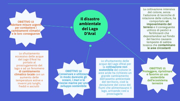 Lo sfruttamento delle acque del Lago d'Aral per la coltivazione non sostenibile del cotone in aree aride ha richiesto un grande cambiamento dell'assetto ambientale del territorio, cioè la deviazione del corso dei fiumi che alimentavano il lago, arrivando così a prosciugarlo