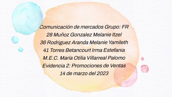 Comunicación de mercados Grupo: FR 28 Muñoz Gonzalez Melanie Itzel 36 Rodriguez Aranda Melanie Yamileth 41 Torres Betancourt Irma Estefania M.E.C. María Otilia Villarreal Palomo Evidencia 2: Promociones de Ventas 14 de marzo del 2023