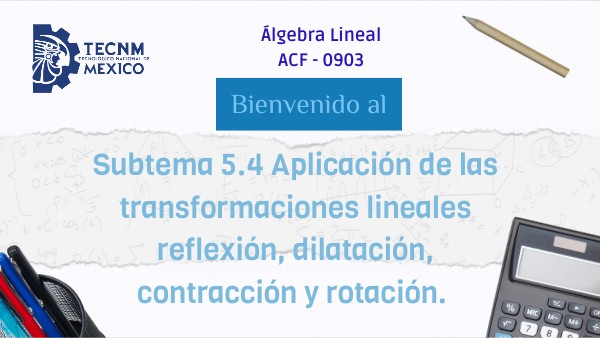 Subtema 5.4 Aplicación de las transformaciones lineales reflexión, dilatación, contracción y rotación.