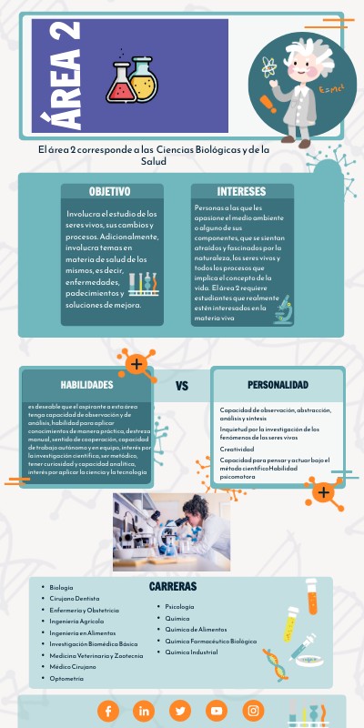 Personas a las que les apasione el medio ambiente o alguno de sus componentes, que se sientan atraídos y fascinados por la naturaleza, los seres vivos y todos los procesos que implica el concepto de la vida. El área 2 requiere estudiantes que realmente estén interesados en la materia viva
