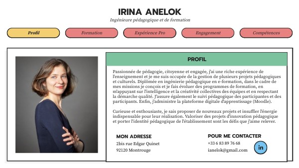 CV interactif d'Irina Anelok