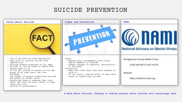 Montgomery County Mobile Crises: 1-855-634-4673 / text 741741 Website:http://notalone.nami.org