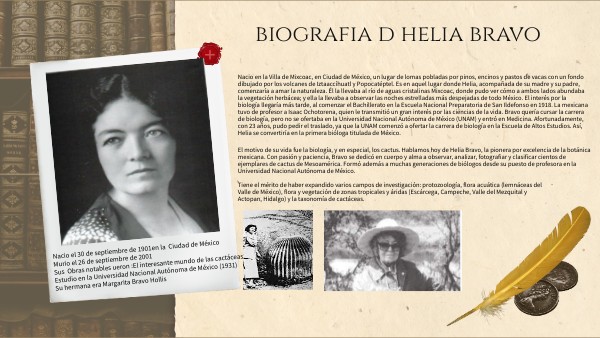 El motivo de su vida fue la biología, y en especial, los cactus. Hablamos hoy de Helia Bravo, la pionera por excelencia de la botánica mexicana. Con pasión y paciencia, Bravo se dedicó en cuerpo y alma a observar, analizar, fotografiar y clasificar cientos de ejemplares de cactus de Mesoamérica. Formó además a muchas generaciones de biólogos desde su puesto de profesora en la Universidad Nacional Autónoma de México.