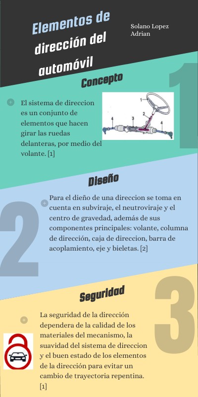 https://www.ro-des.com/mecanica/sistema-de-direccion-que-es/ [1][2] https://dautomotrizuft.weebly.com/direccioacuten.html [3]https://www.comparaonline.cl/blog/autos/seguro-automotriz/como-se-diferencia-la-seguridad-activa-de-la-seguridad-pasiva/#:~:text=Se%20diferencian%20entre%20s%C3%AD%20por,caso%20de%20tener%20un%20accidente. [4]https://cardisel.com.co/blog/sistemas-de-seguridad/ [5] https://blog.transtec.com/spanish/el-futuro-de-la-direcci%C3%B3n-asistida-electr%C3%B3nica-est%C3%A1s-listo#:~:text=DIRIGIR%20POR%20CABLE,en%20los%20veh%C3%ADculos%20durante%20d%C3%A9cadas. [6]https://gacmotor.cl/conoce-los-5-nuevos-avances-en-tecnologia-para-autos-nuevos-este-2022/#:~:text=Los%20Sistemas%20de%20seguridad%20y,seguir%20brindando%20seguridad%20y%20confianza. [7] https://www.quadisrecambios.es/avances-tecnologicos-la-direccion-la-suspension/[8] https://rentingfinders.com/glosario/sistema-anticolision-frontal/