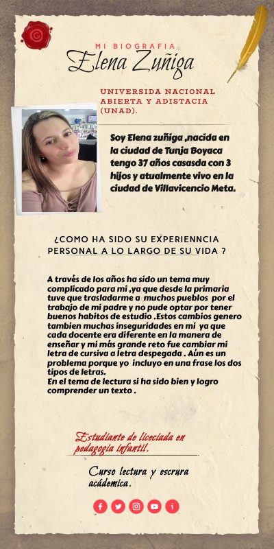 Soy Elena zuñiga ,nacida en la ciudad de Tunja Boyaca tengo 37 años casasda con 3 hijos y atualmente vivo en la ciudad de Villavicencio Meta.