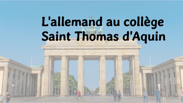 Hallo ! Guten Tag ! Bonjour ! Je suis Madame Saillard, je suis professeure d’allemand au Collège Saint-Thomas-d'Aquin.Tu vas bientôt devoir choisir ta deuxième langue vivante!Je m’adresse à toi et indirectement à vous, parents, pour vous parler de ma matière, l'ALLEMAND !