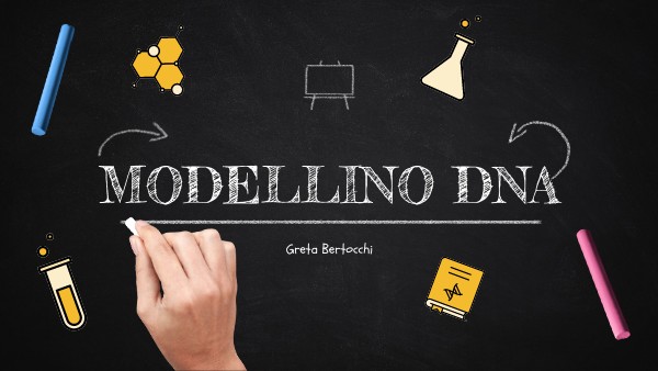 - I 4 cartoncini con i diversi colori, rappresentano le 4 basi azotate- I 2 cartoncini bianchi rappresentano i 2 filamenti che creano la struttura a spirale a doppia elica