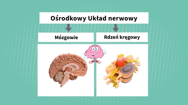 Zaznacz na rysunku strzałką miejsce, w którym mózg łączy się z rdzeniem kręgowym.