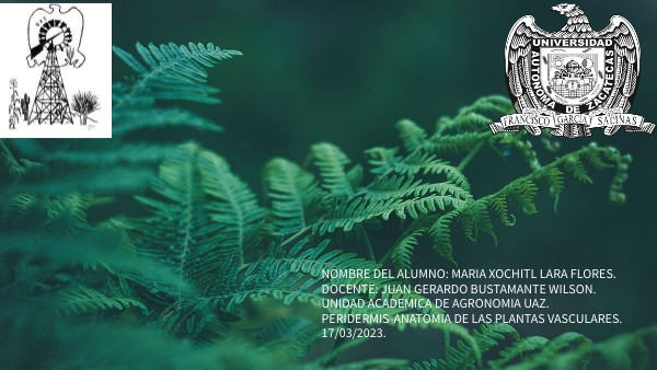 NOMBRE DEL ALUMNO: MARIA XOCHITL LARA FLORES.DOCENTE: JUAN GERARDO BUSTAMANTE WILSON. UNIDAD ACADEMICA DE AGRONOMIA UAZ. PERIDERMIS-ANATOMIA DE LAS PLANTAS VASCULARES. 17/03/2023.