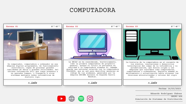 La historia de la computadora es el recuento de los eventos, innovaciones y desarrollos tecnológicos del campo de la informática y la automatización, que dieron origen a las máquinas que conocemos como computadoras, computadores u ordenadores. Registra además su mejoramiento y actualización hasta alcanzar las versiones miniaturizadas y veloces del siglo XXI.