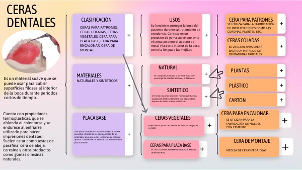 Cuenta con propiedades termoplásticas, que se ablanda al calentarse y se endurece al enfriarse, utilizado para hacer impresiones dentales. Suelen estar compuestas de parafina, cera de abeja, ceresina y otros productos como gomas o resinas naturales.
