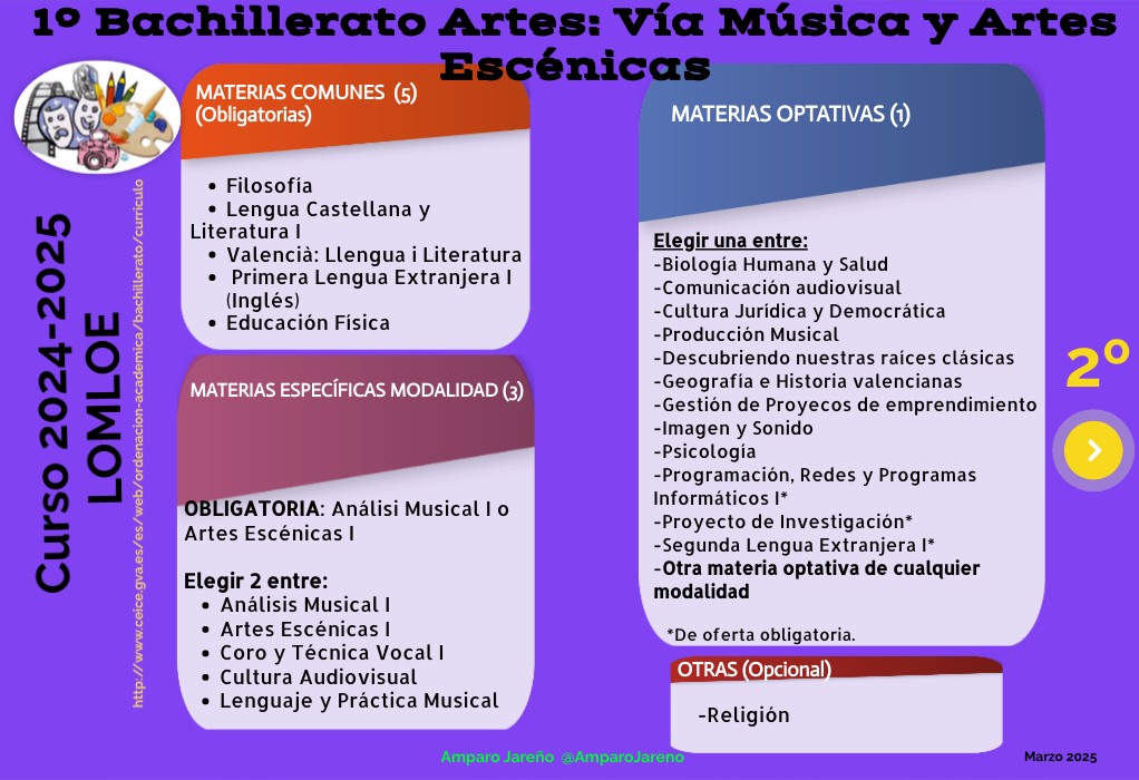 2º Bachillerato Artes: Vía Música y Artes Escénicas