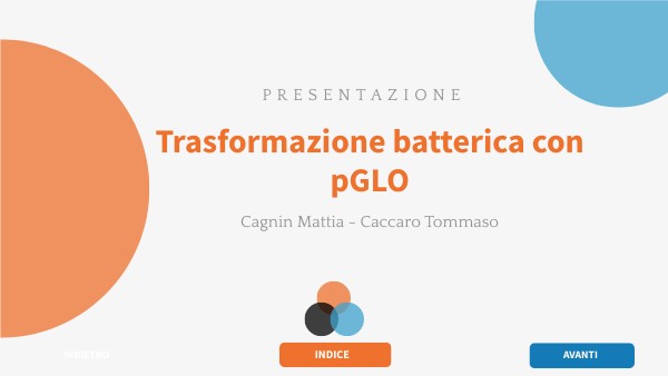 Reagenti: -Plasmide pGLO -Arabinosio -Terreno LB -E. coli -Ampicillina -Soluzione di trasformazione (CaCl2)