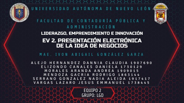 aLEJO HERNANDEZ DANNIA CLAUDIA 1907690ELIZONDO CANALES DANIELA 1730129 MORALES ARANDA ANDREA 1909015 MENDOZA GACRIA RODRIGO 1863144 SERRANO GONZALEZ NADIA ALEIDA 1917417 VARGAS LAZARO JESUS EMMANUEL 1738445