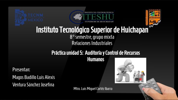 CASO PRÁCTICO DE AUDITORÍA DE RECURSOS HUMANOS DEL INSTITUTO TECNOLÓGICO SUPERIOR DE HUICHAPAN El Instituto Tecnológico Superior de Huichapan, cuenta entre sus áreas de su estructura organizacional, con el departamento de recursos humanos es la dependencia encargada de diseñar, planear, coordinar, supervisar y evaluar el ingreso, promoción, permanencia, capacitación y desarrollo del personal administrativo y académico; así como implementar, regular y administrar servicios, prestaciones y programas especiales para el personal universitario Esta área se encuentra a cargo del Mtro. Rafael Cruz Bautista, quien viene desempeñando sus funciones desde 2014 hasta la actualidad.