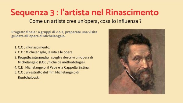 - Progetto intermedio : scegli e descrivi un'opera di Michelangelo (EOC / fiche de méthodologie).