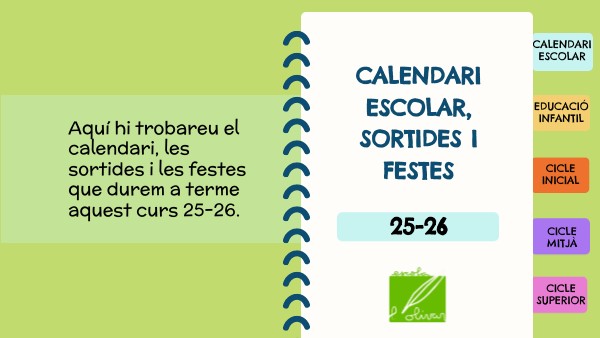 Aquí hi trobareu el calendari, les sortides i les festes que durem a terme aquest curs 25-26.