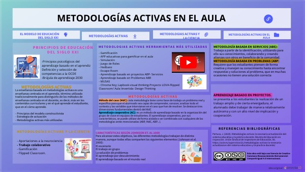 - Gamificación- APP educativas para gamificar en el aula - Simulación - Juego de Roles - Hedbanz - Escape Room - Aprendizaje basado en proyectos ABP- Servicios - Aprendizaje basado en Problemas ABR - MUSAS - Chroma Key; Lapbook-visual thinking-Proyecto LOVA-Flipped Classroom/ Aula Iinvertida- Design Thinking