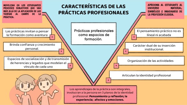 Los aprendizajes de la práctica son integrales, involucran a la persona en 3 planos de la identidad profesional: Pensamiento y reflexión; la experiencia; afectos y emociones.
