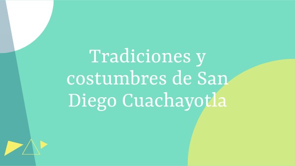 El 6 de enero partida de rosca: partidos de rosca es una tradición que se se hace cada año y el que le salga el niño Dios tiene que hacer tamales el día de la Candelaria. 2 de febrero día de la Candelaria: En este día se comen tamales por la partida de rosca y se bendicen los niños Dios. Como costumbre se hace la cuaresma y la semana Santa en la semana Santa hay procesión toda la noche del jueves Santo y el viernes Santo hay otra procesión de las tres caídas el sábado Santo es el sábado de gloria en que resucita Jesús de nazaret y esos días no se puede consumir carne. La fiesta del Santo patrón San Diego: se festeja el 13 de noviembre empezando A las 6 de la mañana con sus mañanitas , banda, misa en la noche se festeja con baile.