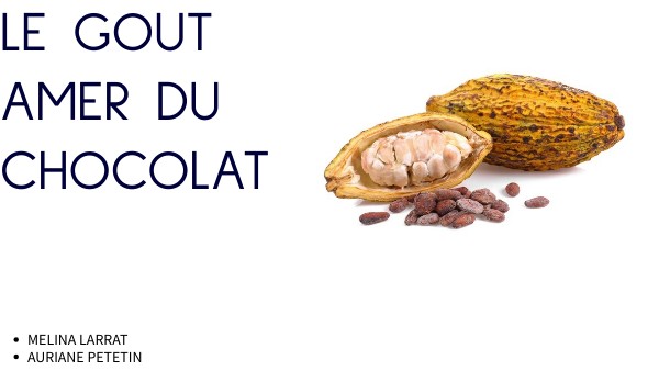 Le cacao provoque beaucoup de défforestation qui met en peril la vie de nombreux animaux. Les deux plus grand producteur de cacao sont la Côte d'Ivoire et le Ghana, et selon des études scientifique le chocolat pourais disparaitre d'ici 40 ans. La cacao détruit énormément d'habitats d'animaux et beaucoup d'animaux perde la vie. Les primates sont en voie d'éxtinction a cause des cultures de cacao mais il y a aussi l'éléphant qui est est en voie d'extinction a cause de ces cultures de cacao. La vie des cultivateurs est difficiles, la plus part vivent dans la pauvreté et les enfants travaillent également. Le caractere acide, sucré, amer du chocolat sont les saveurs comunément analysées. Toutefois, il est possible d'aller plus loin en s'intéressant a l'agrésivitée du chocolat.