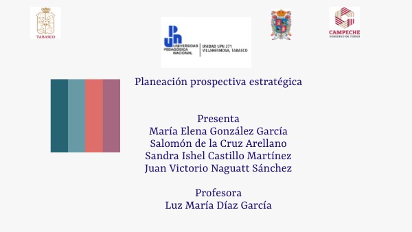Planeación prospectiva estratégica Presenta María Elena González García Salomón de la Cruz Arellano Sandra Ishel Castillo Martínez Juan Victorio Naguatt Sánchez Profesora Luz María Díaz García