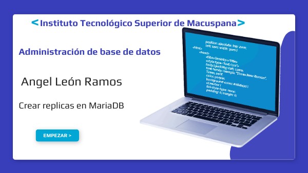 Recuerda, que se requieren las variables MASTER_LOG_FILE y MASTER_LOG_POS que se muestran al ejecutar «SHOW MASTER STATUS» en mariadb en el servidor maestro. Iniciar sesión en el servidor esclavo mysql –u root –p La siguiente instrucción le indica que se detenga el esclavo: STOP SLAVE; Ahora hay que indicarle donde se encuentra el servidor maestro CHANGE MASTER TO MASTER_HOST='192.168.1.69', MASTER_USER='ale', MASTER_PASSWORD='1234', MASTER_LOG_FILE='mysql-bin.000007', MASTER_LOG_POS=1656; Iniciar el servidor START SLAVE; Ver el estatus SHOW SLAVE STATUS\G;