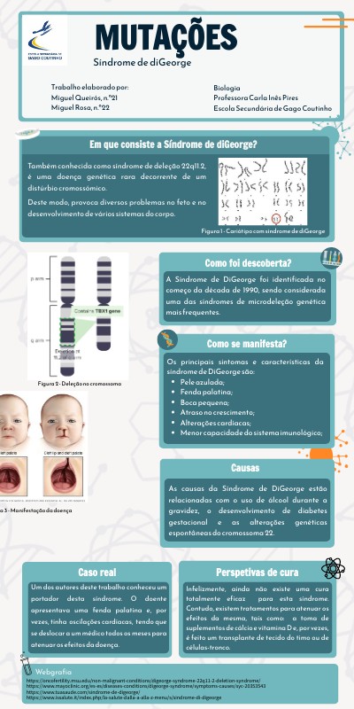 Também conhecida como síndrome de deleção 22q11.2, é uma doença genética rara decorrente de um distúrbio cromossómico. Deste modo, provoca diversos problemas no feto e no desenvolvimento de vários sistemas do corpo.