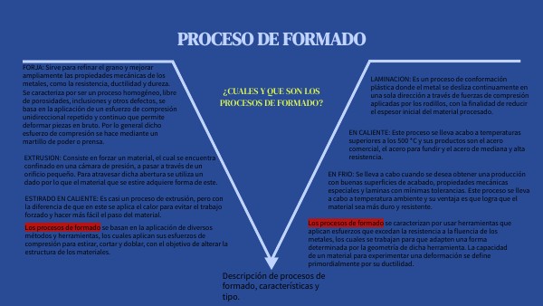 Los procesos de formado se caracterizan por usar herramientas que aplican esfuerzos que excedan la resistencia a la fluencia de los metales, los cuales se trabajan para que adapten una forma determinada por la geometría de dicha herramienta. La capacidad de un material para experimentar una deformación se define primordialmente por su ductilidad.
