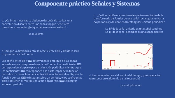 d. La convolución en el dominio del tiempo, ¿qué operaciónrepresenta en el dominio de la frecuencia? La multiplicación.