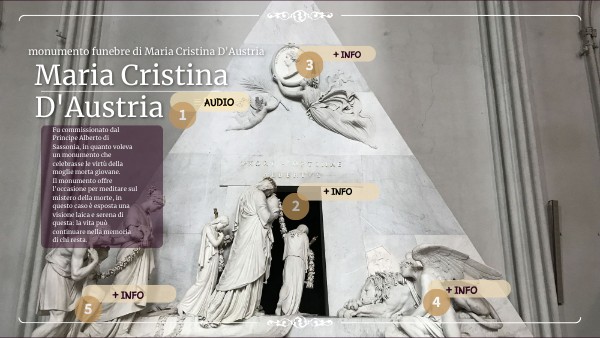 Fu commissionato dal Principe Alberto di Sassonia, in quanto voleva un monumento che celebrasse le virtù della moglie morta giovane. Il monumento offre l'occasione per meditare sul mistero della morte, in questo caso è esposta una visione laica e serena di questa: la vita può continuare nella memoria di chi resta.