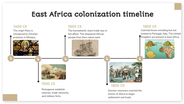 “Eastern and Southern Africa, 1400–1600 A.D.: Chronology: Heilbrunn Timeline of Art History: The Metropolitan Museum of Art.” The Met's Heilbrunn Timeline of Art History, Metropolitan Museum of Art , https://www.metmuseum.org/toah/ht/08/afa.html. Magazine, Smithsonian. “A Brutal Genocide in Colonial Africa Finally Gets Its Deserved Recognition.” Smithsonian.com, Smithsonian Institution, 28 Oct. 2015, https://www.smithsonianmag.com/history/brutal-genocide-colonial-africa-finally-gets-its-deserved-recognition-180957073/. “The Philosophy of Colonialism: Civilization, Christianity, and Commerce.” Violence in Twentieth Century Africa, https://scholarblogs.emory.edu/violenceinafrica/sample-page/the-philosophy-of-colonialism-civilization-christianity-and-commerce/#:~:text=Christianity%20was%20one%20justification%20that,educate%20and%20reform%20African%20culture. . Ferreira, Eduardo de Sousa. “Portuguese Colonialism in Africa: the End of an Era.” Unesdoc.unesco.org, The United Nations Educational, Scientific and Cultural Organization, 1974, https://unesdoc.unesco.org/ark:/48223/pf0000011345.