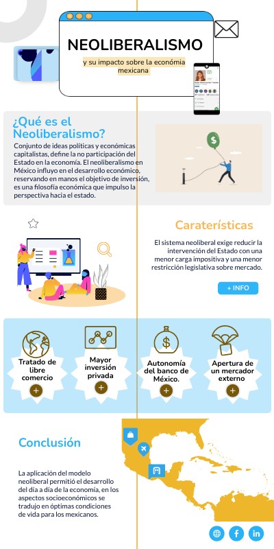 Infografía digital sobre el neoliberalismo y su impacto en la economía mexicana