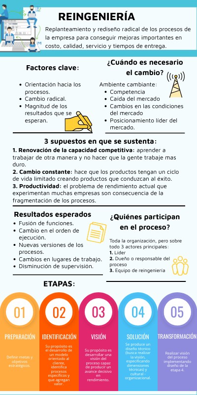 Replanteamiento y rediseño radical de los procesos de la empresa para conseguir mejoras importantes en costo, calidad, servicio y tiempos de entrega.