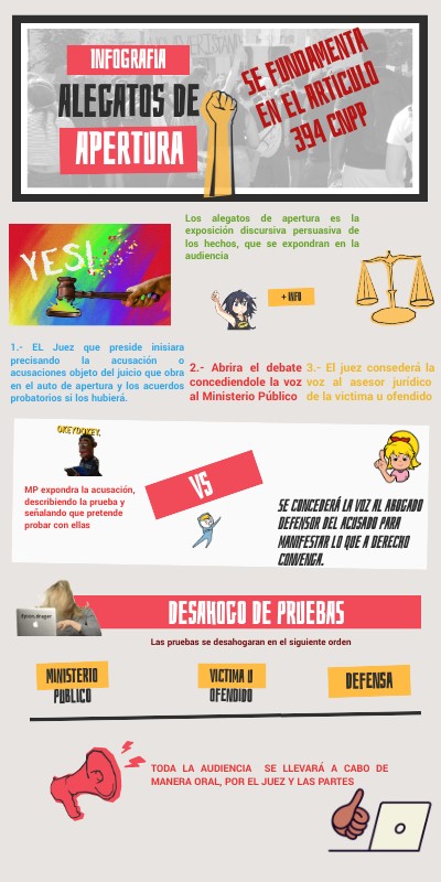 Los alegatos de apertura es la exposición discursiva persuasiva de los hechos, que se expondran en la audiencia
