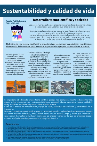Es importante el adecuado avance tecno-científico porque nos acompaña durante toda nuestra vida, gracias a ello, generamos más y más conocimiento en sociedad, a la vez que mejora nuestra calidad de vida y nos ofrece herramientas para cuidar de nuestro planeta. Como en la mejora de medicamentos, equipo de salud, calidad en la educación y optimización en el transporte. Debemos considerar aspectos éticos para el correcto desarrollo y aplicación de estos avances, aunque nos traen muchos beneficios, antes deben pasar por un proceso largo y arduo que involucra la cooperación de muchos individuos y momentos de prueba y error, por lo que los principios éticos y morales son fundamentales para respetar la integridad de todos
