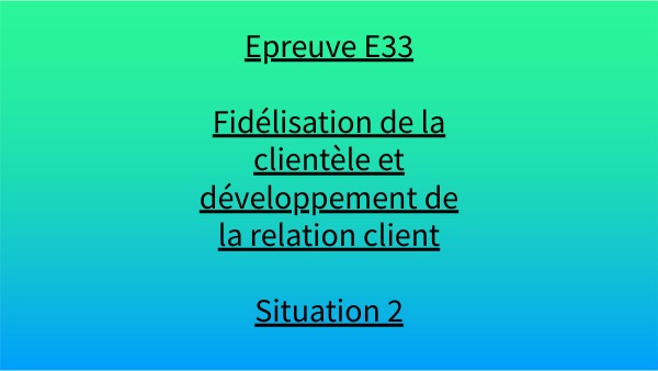 Epreuve E33 Fidélisation de la clientèle et développement de la relation client Situation 2