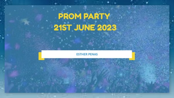 You must create a prom party for June 2023 and present to the class. - Do a survey among teachers and students - Create the announcement and invitation - Create the menu - Prepare the music - Inform about dressing code - Dressing code - Timeline - Map - Data - Team
