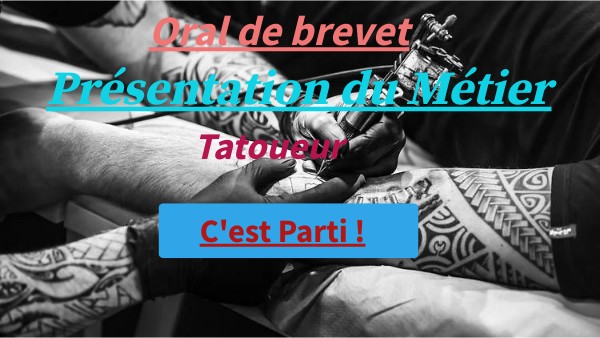 Je vais vous présentez le métier Tatoueur car c'est le métier que je veux pratiquer plus tard , c'est un métier complexe et on va voir pourquoi ce métier l'est autant que d'autre . Il n'y aura pas de moment stage car je suis tombé malade et je n'ai donc pas assisté à mon stage mais même sans je vais pourvoir dire beaucoup de chose.